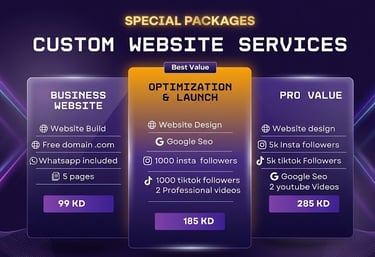 We specialize in social media marketing, website creation, and Google SEO to elevate your business and enhance your online presence in Kuwait and beyond.
